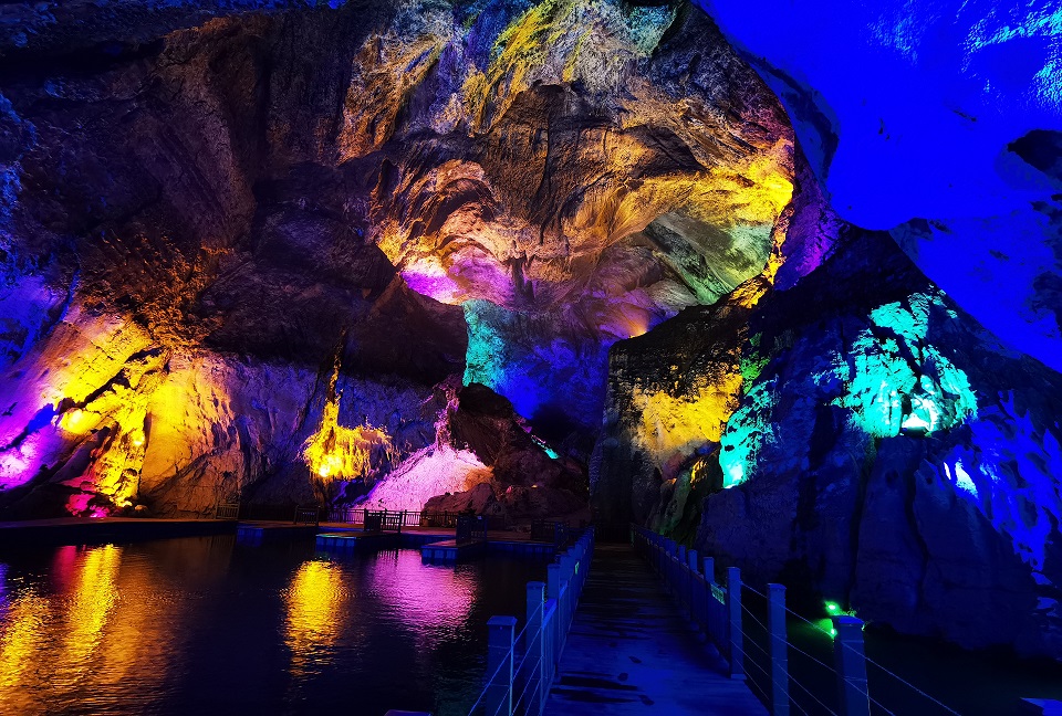 如何設計打造溶洞夜景燈光秀才能更吸引人?溶洞的景觀如詩如畫,經過自然之美來烘托溶洞本身特征。普通中藝光影秀在停止燈光秀設計時,會經過自然化藝術化、場景化、科技化相分離,打造一個藝術與科技兼并的溶洞光影秀,讓游客在這里感受自然、藝術、科技交融的美好。那么,終究應該如何設計打造溶洞夜景燈光秀才干更吸收人呢?溶洞——3D投影在溶洞內的洞壁上,用3D投影技術演繹溶洞的構成原理,特征,以及地質學問,歷史文化特征等等,讓游客在這里感受藝術與科技的交融。 END溪河、暗河——投影、水幕電影 溶洞的溪河、暗河則依托水紋燈,將山體、形態、顏色與河流的投影交互,相映成趣。在溪河、暗河河面比擬開闊,平整的中央中藝光影秀會思索打造水幕電影,光影交匯,絢麗多彩。 瀑布——燈品設置加投影瀑布傾注而下,裝置水底燈、煙霧燈,呈現煙霧旋繞的仙境景觀,并運用多媒體投影技術打造魚、蓮花等人魚可互動的瀑布景觀。END絕壁——山體投影1中藝光影秀經過對溶洞地質文化的提煉和當地歷史文化的解讀,創意設計出多媒體投影內容,投影在絕壁上,讓游客體驗圓滿的娛學閱歷。